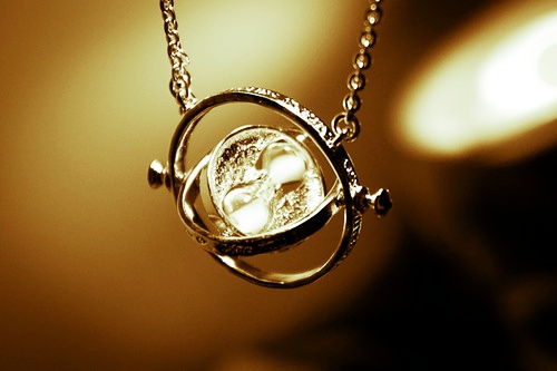 Isso é um vira-tempo, um artefato mágico que permite a quem o usa viajar no tempo. Seria essencial, quem não gostaria de voltar no tempo para arrumar as coisas, impedir futuros arrependimentos? Se você não quer, bem... Eu com certeza ia querer ter um.